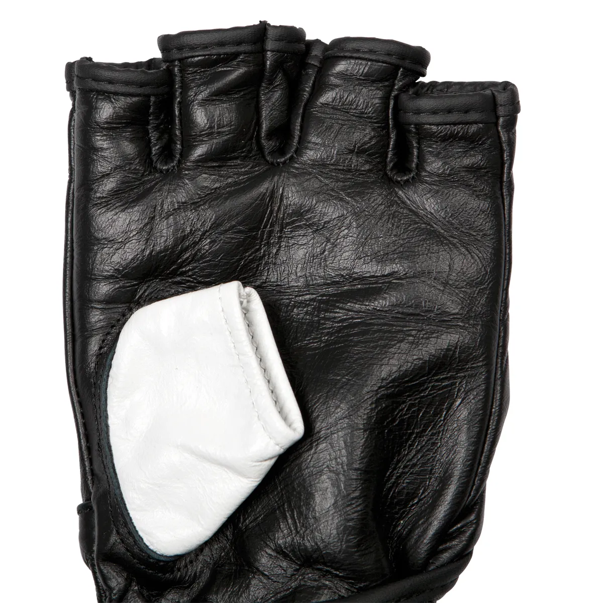De Premium MMA lederen zandzakhandschoen is een handschoen met open vingers en is perfect voor het oefenen van stoottechnieken en voor het trainen van houd- en greeptechnieken. Andere toepassingsgebieden zijn vechtsporten zoals Ultimate Free Fight, Mixed Martial Arts en vergelijkbare zelfverdedigingstechnieken. De handschoen is gemaakt van koeienhuid van hoge kwaliteit en wordt aan de pols bevestigd met een brede klittenbandsluiting. Het klittenband wordt twee keer als een verband om de pols gewikkeld. Hierdoor wordt de pols optimaal beschermd. De handschoen blijft echter flexibel.